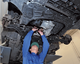 | 定期点検とは自家用乗用車の場合、車検と車検の間の年に行う1年点検と車検時に行う2年点検があり、自動車の故障を未然に防ぎ、その性能維持を図るのが目的です。ユーザー本人が容易に行うことができる日常点検にくらべて専門的知識・技術等が必要な点検内容なので、整備工場に依頼して、しっかり点検してもらいましょう。 |