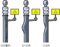 定期点検時にひび割れ、ふくらみ、つぶれ