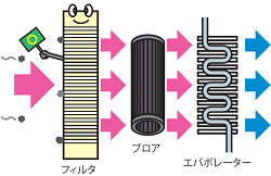 エアコン・フィルタは、使用を続けるうちにろ過したほこりや花粉等が蓄積され、目詰まりを起こします。